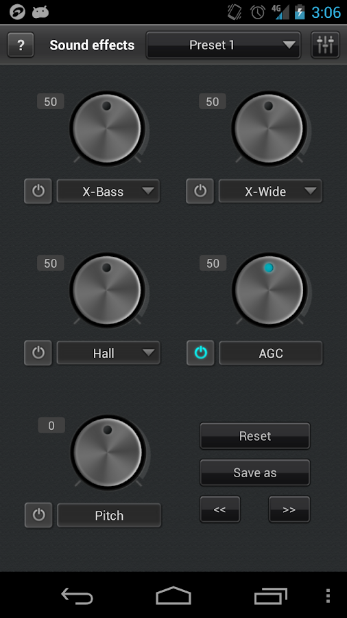 هذه هى النسخة المجانية من jetAudio Music Player التى تعمل ب 10 من المعادلات الرسومية والمؤثرات الصوتية مع اضافات كثيرة للمؤثرات الصوتية , ومحسن أغانى AM3D , و Bongiovi DPS , وسيتم بيع الإضافات والمؤثرات الصوتية من خلال شرائها فى التطبيق , ةله مزايا عديدة اخرى .