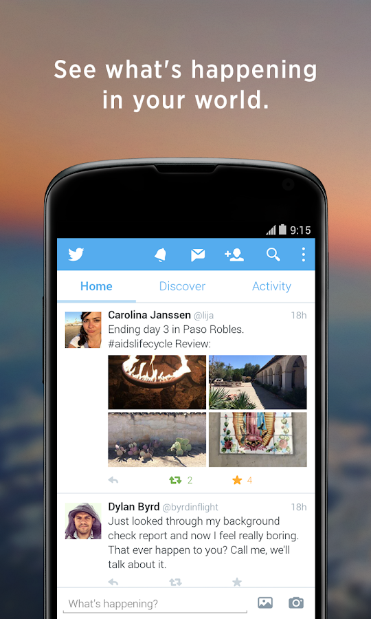 تويتر هو التطبيق الحر الذي يمكنك من التواصل مع الناس، والتعبير عن نفسك ، واكتشاف المزيد عن كل الأشياء التي تحبها.
